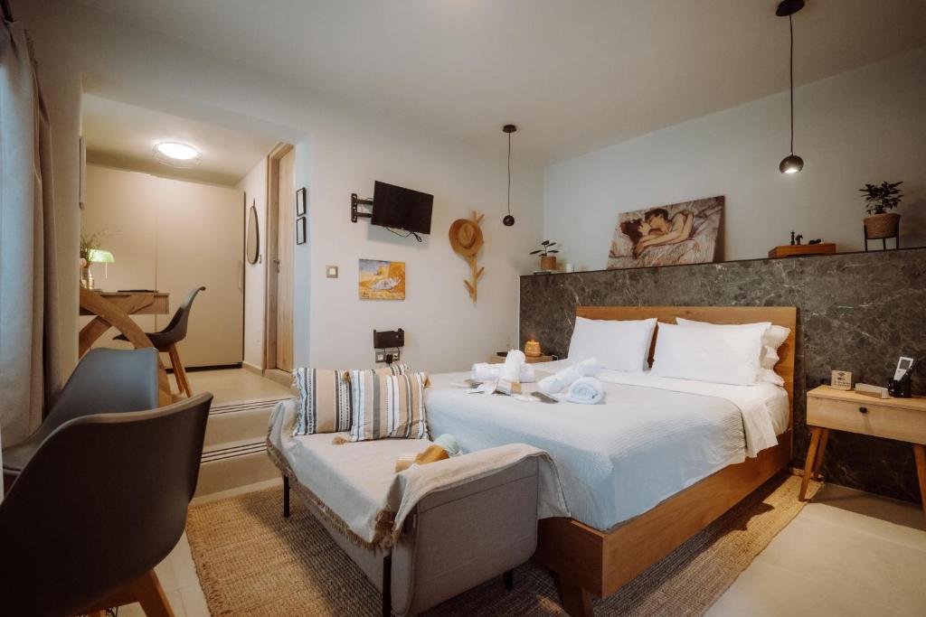 Η φιλόξενη κατοικία μας διαθέτει ένα χώρο ύπνου για δύο άτομα με ένα υπέρδιπλο άνετο κρεβάτι και βρίσκεται σε απόσταση αναπνοής από την παραλία. Πλήρως εξοπλισμένοι χώροι , με επίκεντρο τους λευκούς , μπεζ, γκρι χρωματισμούς....