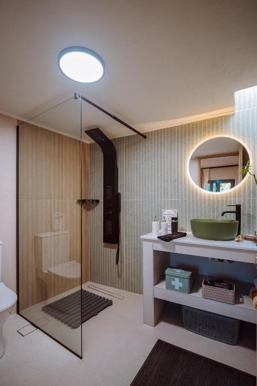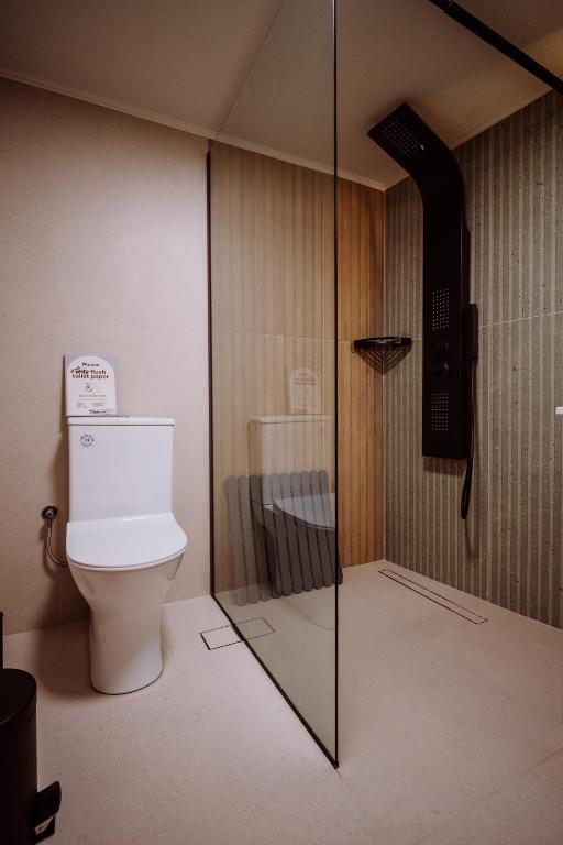 - 1 μπάνιο με ντους, δωρεάν προϊόντα περιποίησης, πετσέτες, σεσουάρ μαλλιών